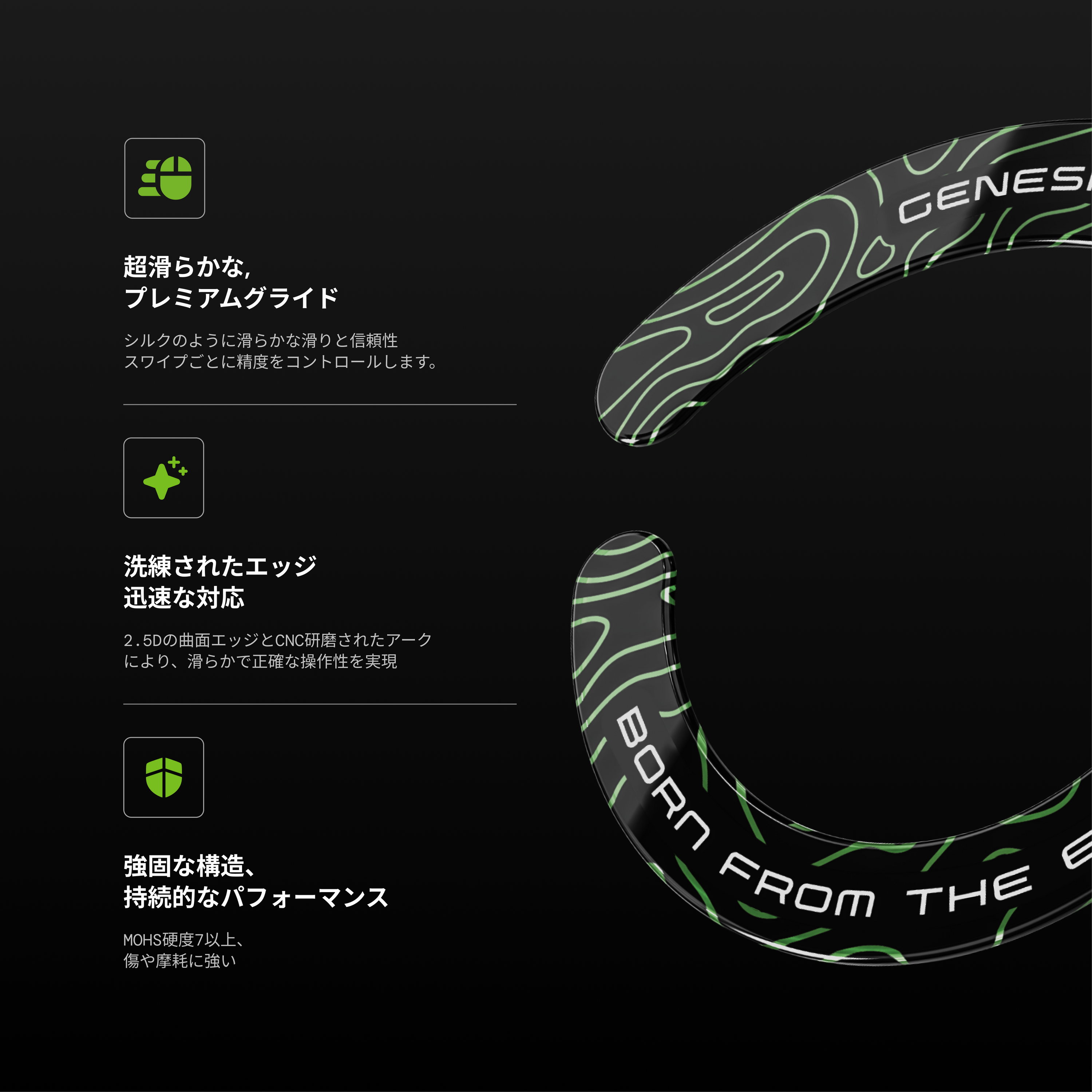Genesis独自のデザインと超高級ガラスを採用したGenesis ガラススケートは、Terraに、よりシャープで、より速く、そして完璧に安定した滑りを提供します。最高のパフォーマンスのために設計されたプレミアムアップグレードです。