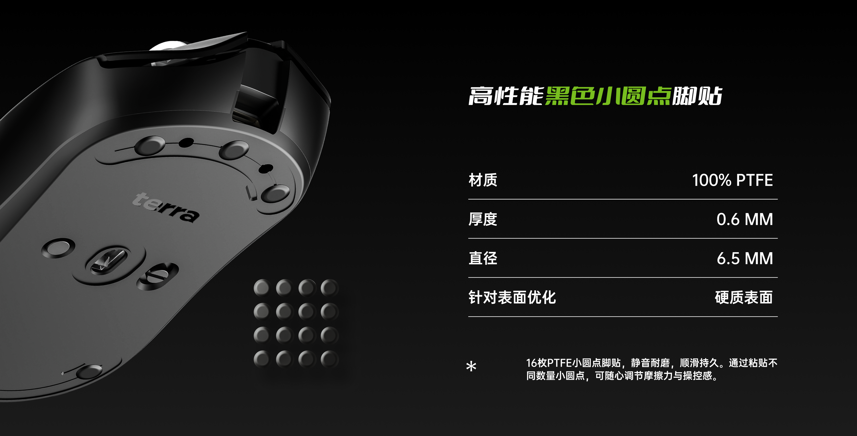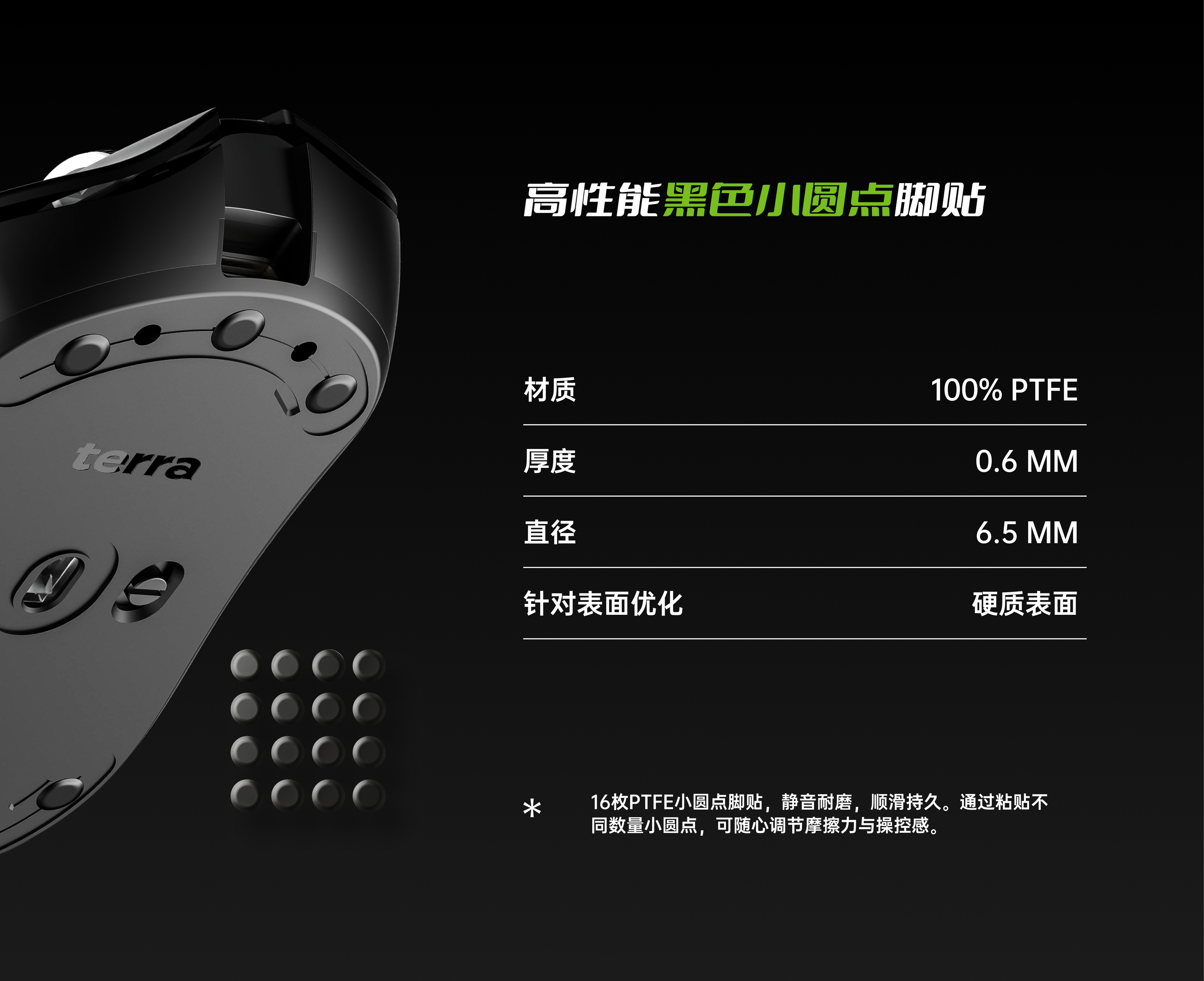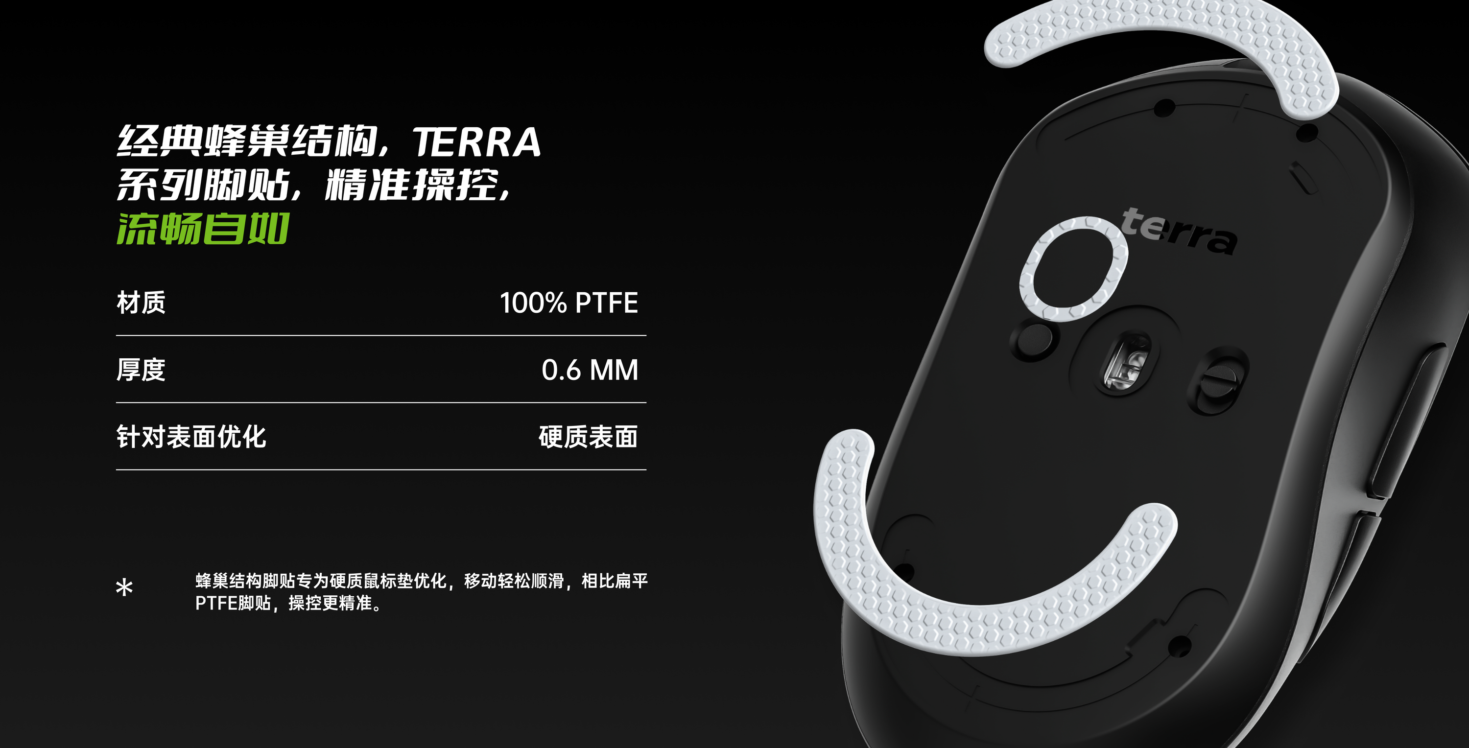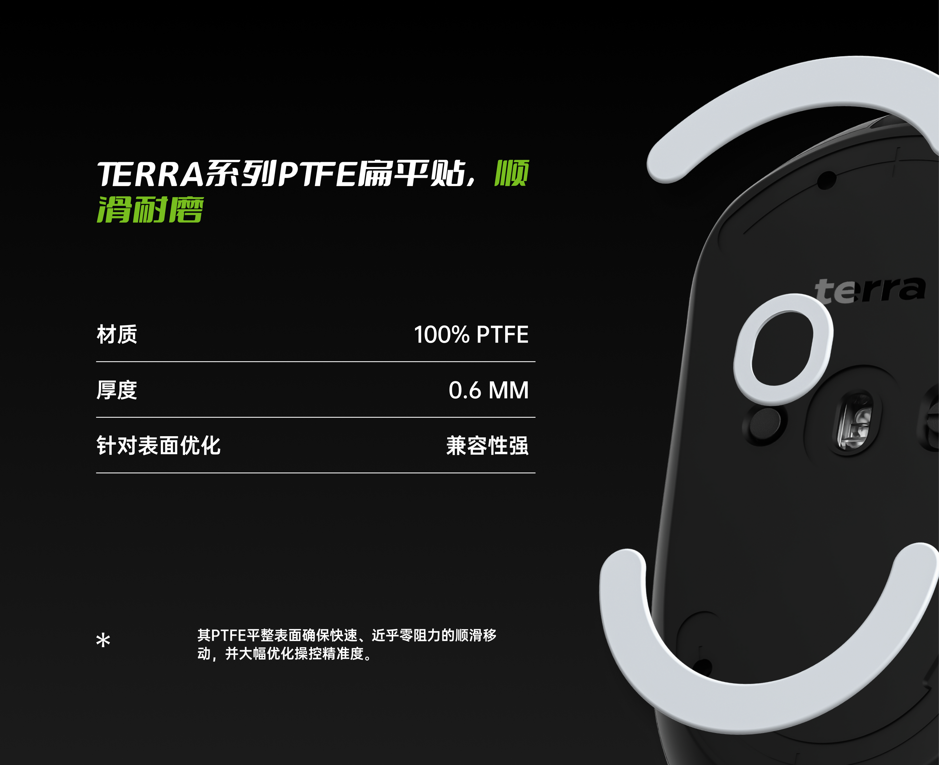 鼠标配件包将四款必备配件整合到一个功能齐全的一体化解决方案中,专为您的 Terra PRO 鼠标打造。它包含所有必需和备用配件,可提供稳定、可控的性能,让您畅享不间断的顶级游戏体验。