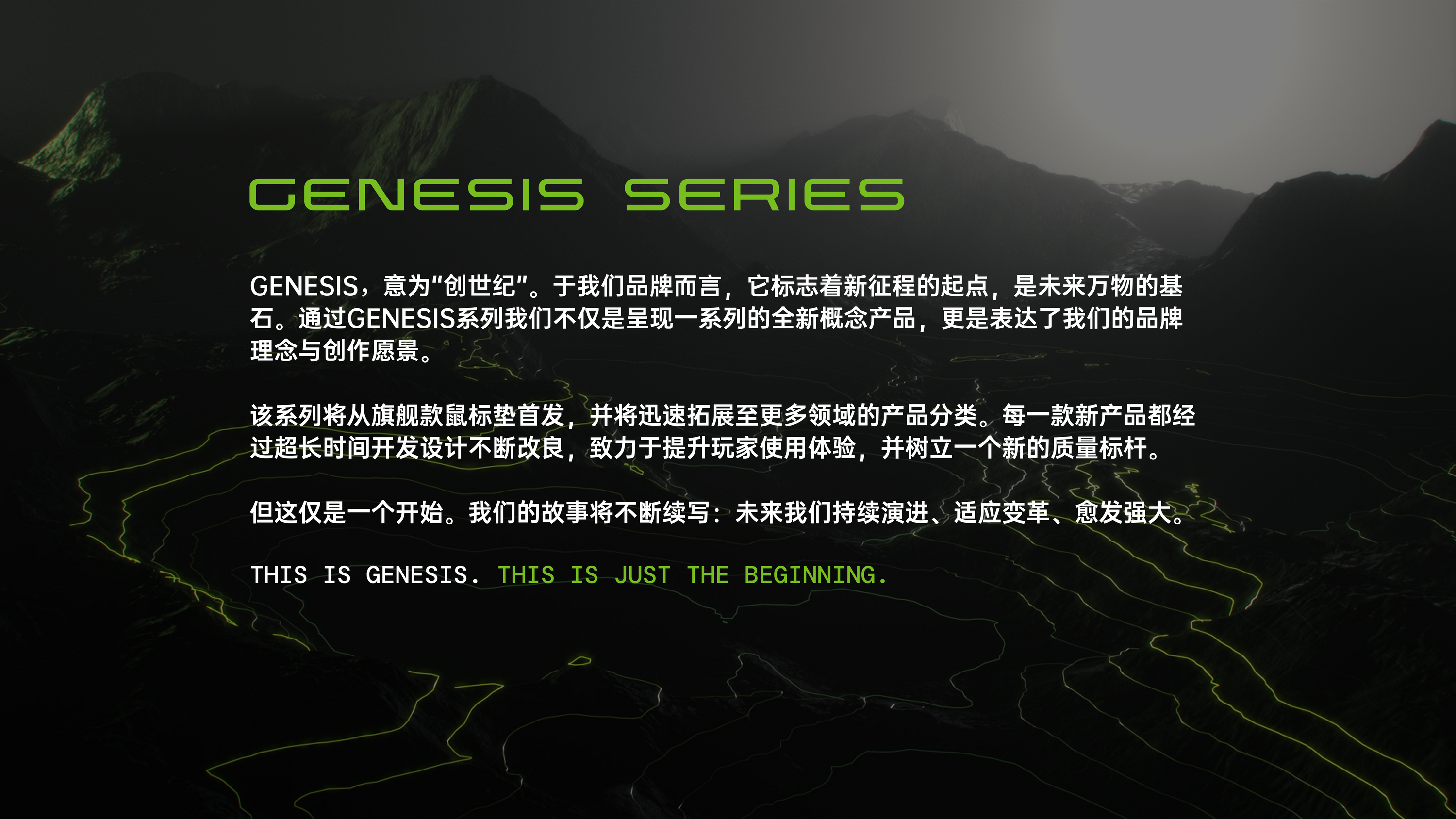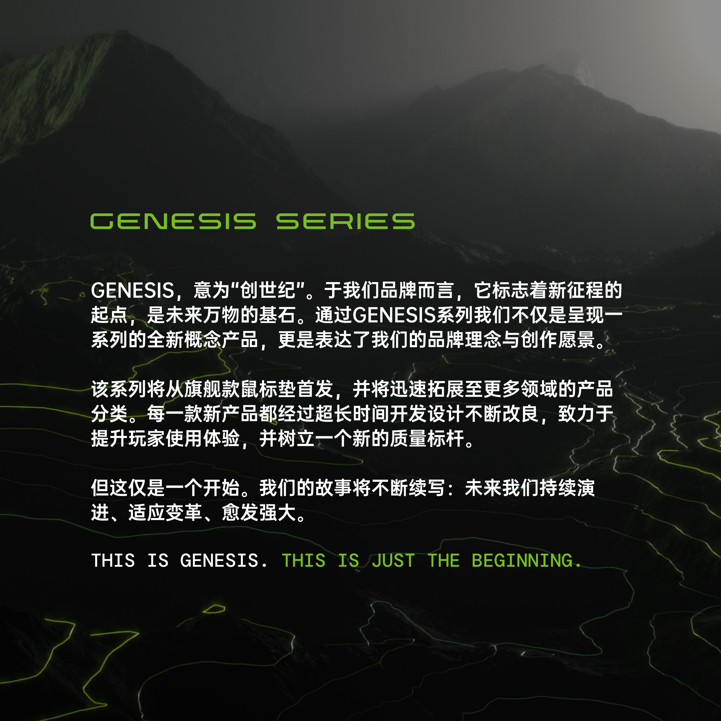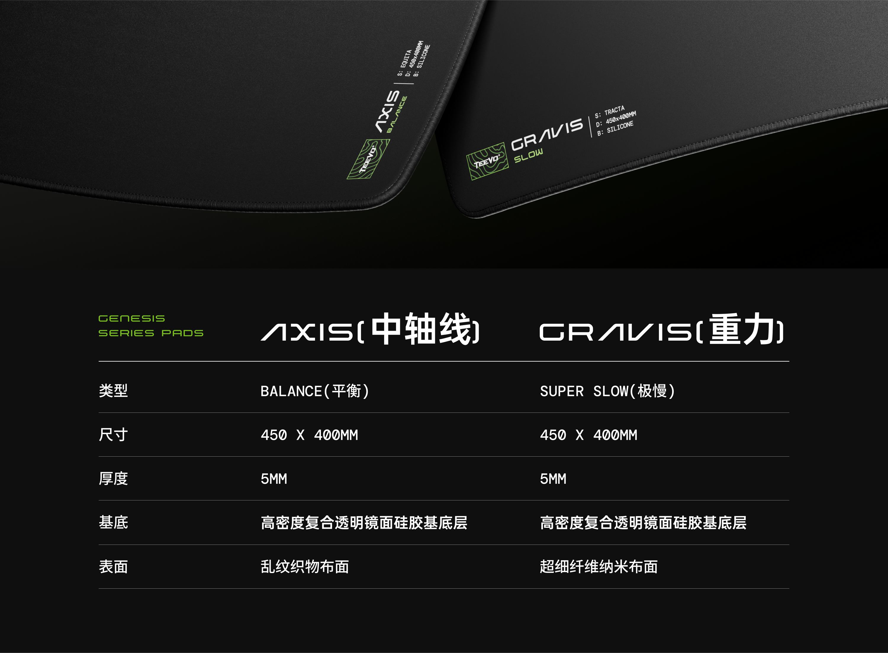 Genesis意为创造。Genesis系列标志着我们奠基的第一步。它不仅仅是一个产品线,更代表着我们的理念和愿景。在Genesis系列中, Axis代表着运动中的平衡,速度与精准的完美融合,专为追求敏捷与控制的玩家而设计。Gravis则秉承重力之道,赋予每一次动作以目标明确性,专为那些将精准与精湛技艺置于首位的玩家打造。